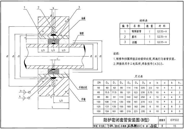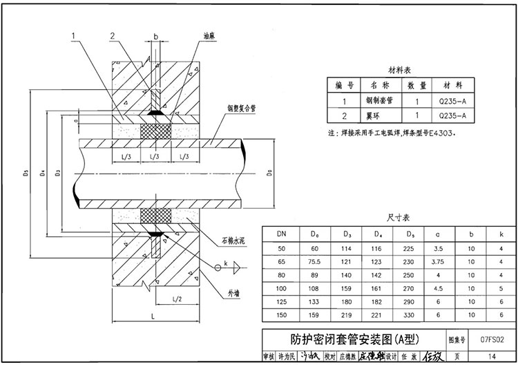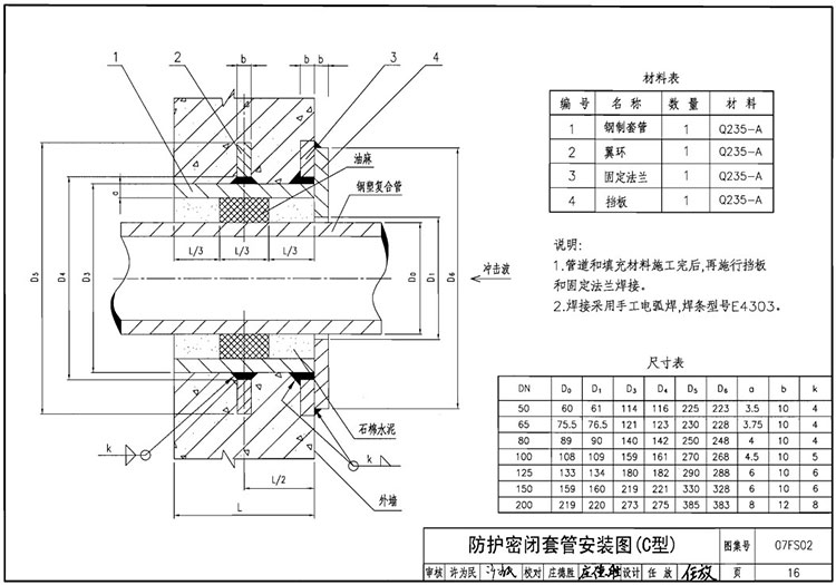 07FS02防護密閉套管圖集A B C D E F技術參數(shù)