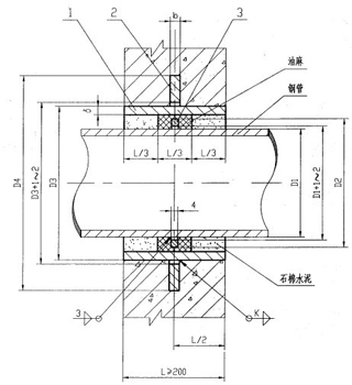 當穿墻管的材質和外徑等超出本圖集范圍,應注意對防水套管的結構形式、尺寸及縫隙內采用的填料等進行必要的調整和修正。